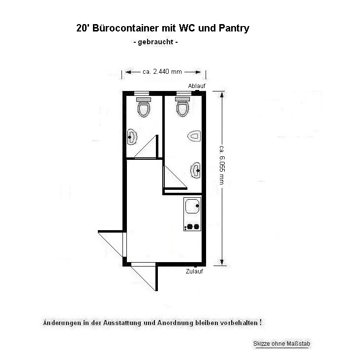 20’ Bürocontainer mit Damen/Herren-WC