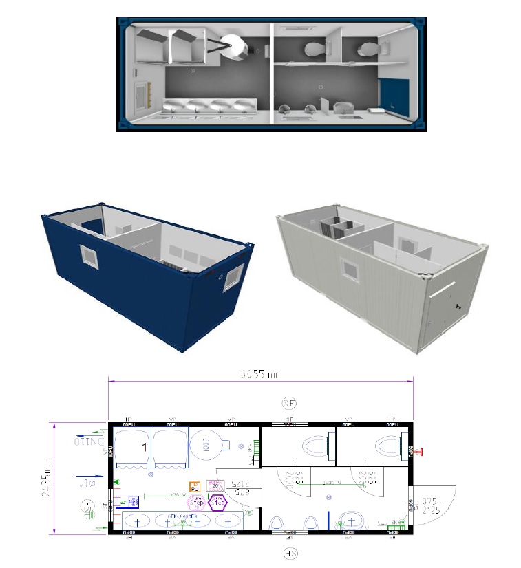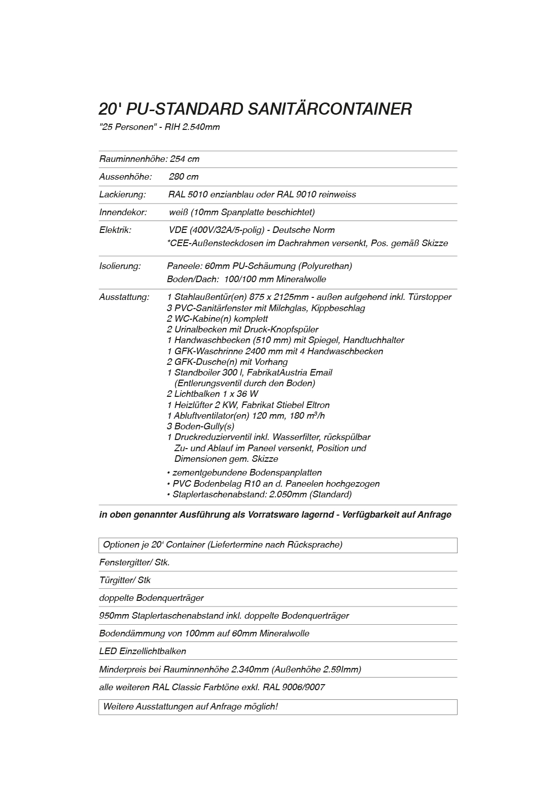20′ PU-STANDARD SANITÄRCONTAINER „25 Personen“ – RIH 2.540mm Container SCN-002